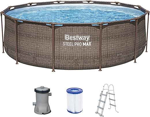 Bestway Steel Pro MAX Frame Pool-Set mit Filterpumpe Ø 366 x 100 cm, Rattan-Optik (Schokobraun), rund