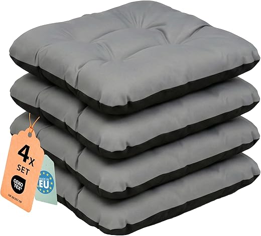 Details: Superkissen24. Stuhlkissen Sitzkissen für stühle – 4er Set 45×45 cm – Outdoor und Indoor – grau